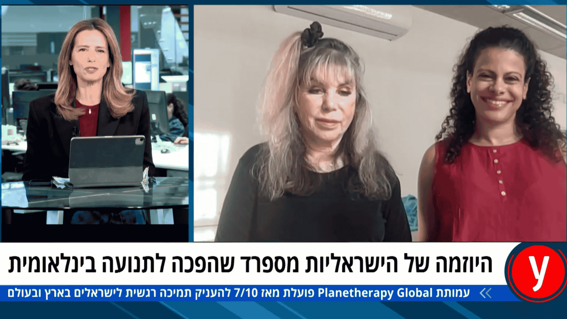 Sharon Kidon interviews Dr. Bat Chen Shachar and Dr. Carol Lieberman, representatives of Planetherapy’s first international delegation, on Ynet TV — an inspiring initiative founded by Tal Nir and Ilana O’Malley that, for the first time, enables therapists from around the world to come to Israel and provide free emotional support to those affected by the war.